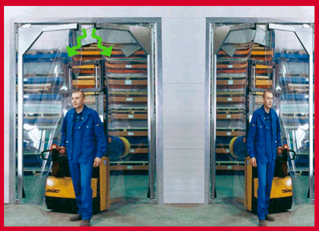 C’une porte double action particulièrement efficace pour l'isolation, extrêmement fiable, sans panne et sans entretien, qui constitue une alternative économique aux portes souples rapides.
